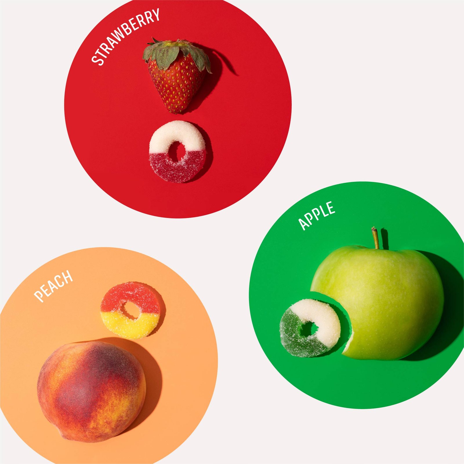 - Three delicious fruit flavors: Peach, Green Apple, and Strawberry